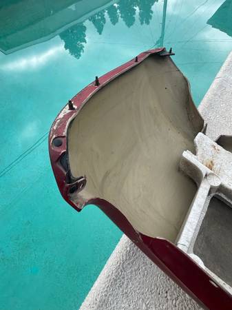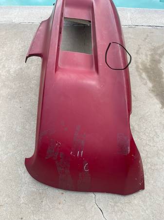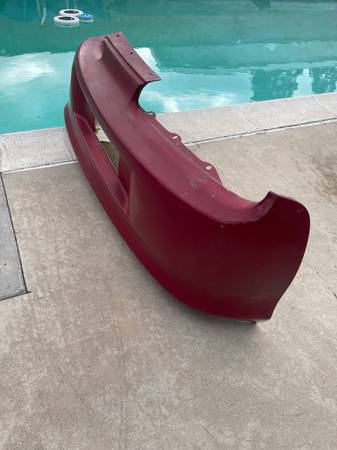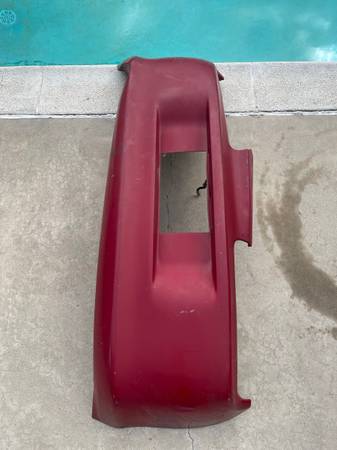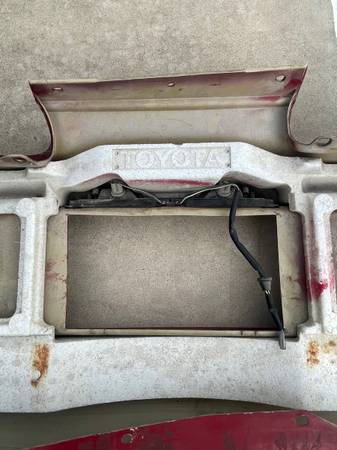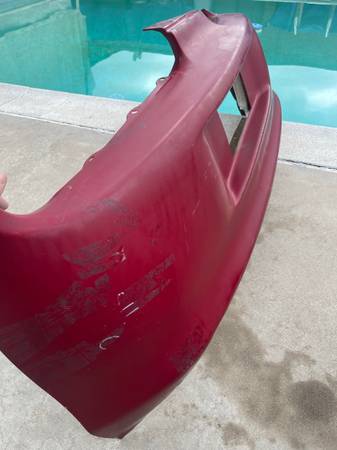 Here is OEM rear bumper with impact foam, mounting hardware (the metal retainer strips) and license plate lights with harness . It was removed 1997 JDM RZ MKIV Supra in red color. It is compatible for 1993-2002 JDM/USDM Supra. JDM has cut out where the license plate is. The bumper is in good condition overall (minor scratches and 1 dimple circled in black) with no major damage or repairs. It has one torn mounting point where the exhaust exits as shown. The bottom of the bumper is curled from shipping. If you apply heat it will come back to form.