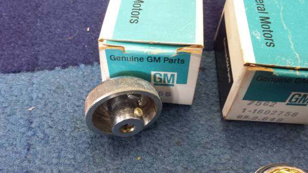 Chrome with the gold color wreath , pair of new old stock Cadillac radio knobs in the original boxes.