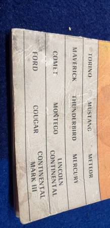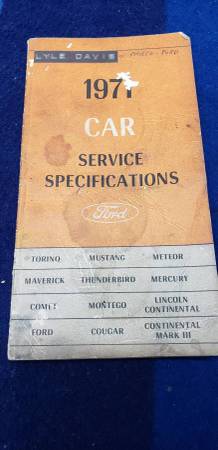Covers Mustang, Torino, Thunderbird, Comet, etc.. with engine and transmission specs, etc