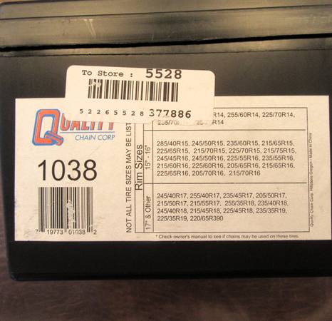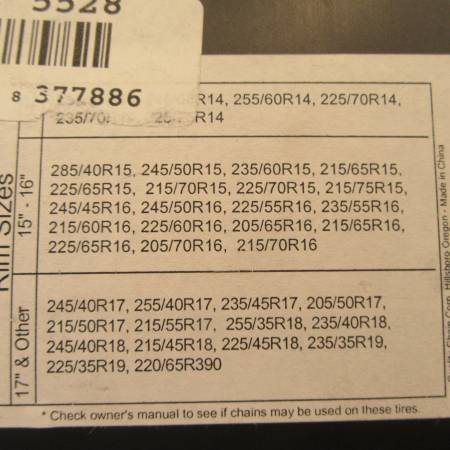 Snow Cables Chains. Please make sure your tire size is listed in chart. No returns.