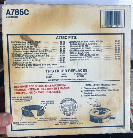 This is an AC Delco air filter for 1980's and 90's GM L4 4 cylinder engines. See the photos of the box for all 4 cyl. GM applications. Mostly for the 2.5L 'Iron Duke' 4 cyl. but a few applications for the 2.0 and 2.2 and even the 1.8 in the Pontiac Sunbird.