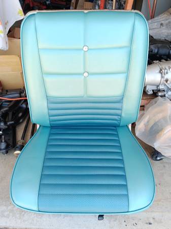 The hood needs painting. NEW carpet kit, headliner, and factory color reupholstered front bucket and rear bench seat. New window regulators, dash pad, and gage panel. The original steering wheel will need to be rebuilt.