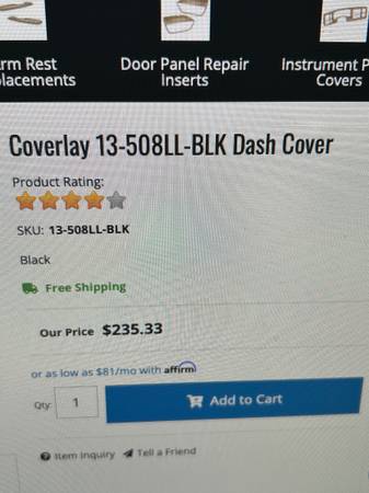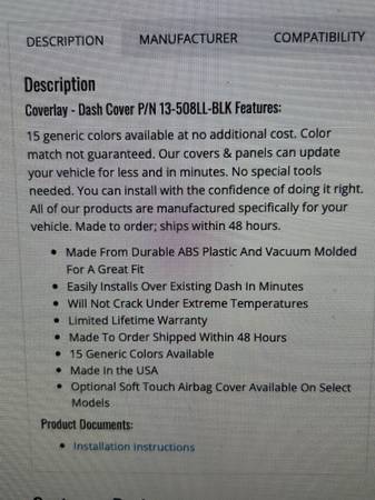New “Coverlay” dash cover still in unopened box. Part # 13-508LL (Black) . Purchased for my 2009 that was totaled last July . 7 one 4 ) 27 one - o255
