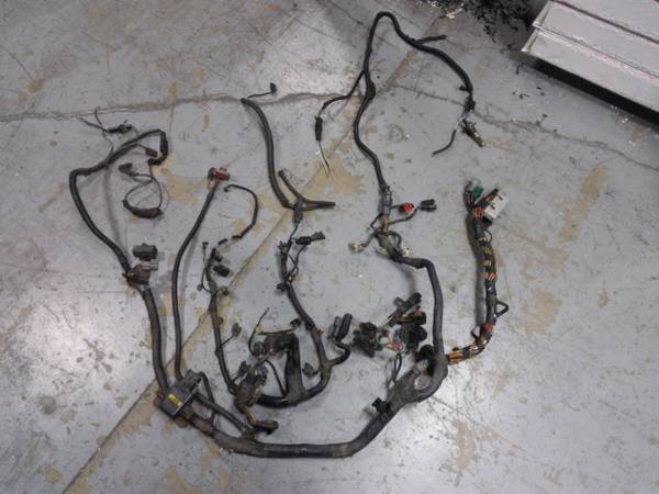 Complete EFI wiring harness from 1990 Mustang 5.0 manual trans car. This is 100% complete with injector harness, main harness and O2 harness. Excellent condition, not hacked up, not patched and no broken parts. Comes with a few relays & sensors as well.