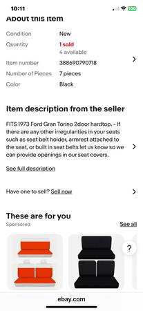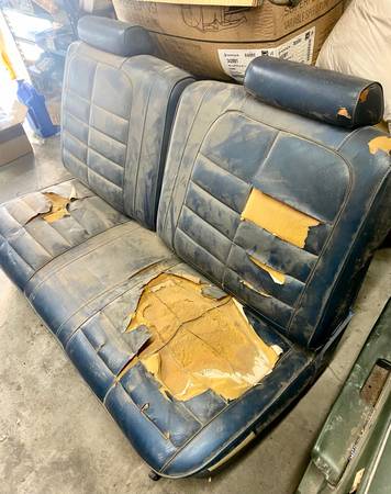This original Ford Gran Torino Bench Seat has been in dry storage all it’s 50+ Years, Either inside the original 1973 Ranchero it came out or in the owners Garage collecting dust. It still has its Original Seat Upholstery and Foam padding. Yes, it needs to be reupholstered but the upholstery shop will be able to use the covering for an original pattern and its original foam padding is like new. The retracting mounting brackets are completely rust free and the seat slides forward and back as it should. I’ve included 2 pics at the end of a bench seat reupholstery kit on eBay that is an outstanding deal