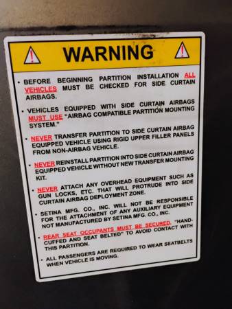 • This is originally used for prisoners transportation • Also can be used in back of a truck, for added safety protection ∆ DIMENSIONS: 57 1/4" inch wide from bottom tube across ∆ Height 45 1/2"...