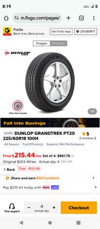 2025 NEW DUNLOP PT20 100H TIRES 225/60/18 FOR ANY TOYOTA RAV4 CROWN VE - $549