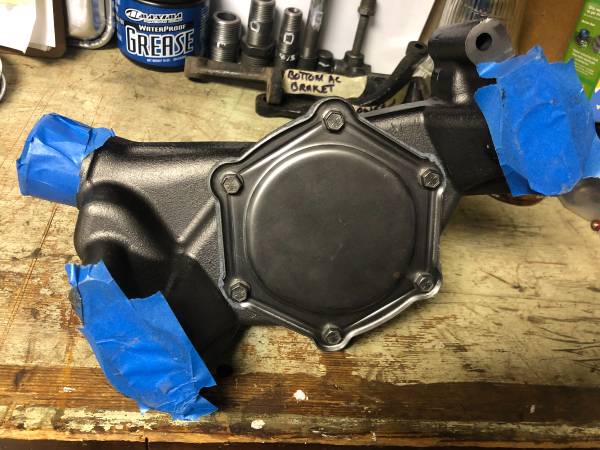 off a bran new 383 crate chevy motor, Long neck Blue print waterpump. I had to get a short neck waterpump 714-7one9-3845