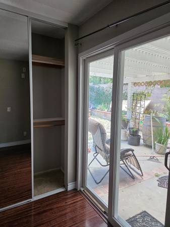 The room is big enough for a queen size bed, dresser,desk, and nightstand. The room has a sliding glass door to the backyard which is nice to let in fresh air . There is limited extra storage as well. Room is newly painted. There are brand new appliances including washing machine, kitchen range, etc...