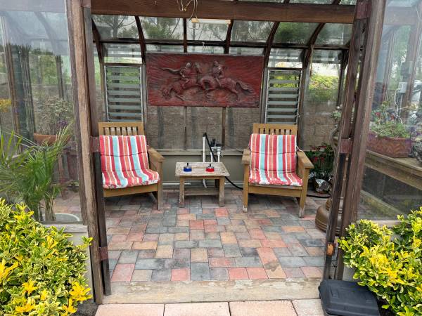 Background check required. Smoking is allowed in greenhouse only which has been set up as a comfortable smokers retreat.