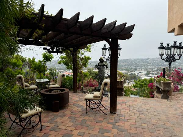PRIVACY & SERENITY are featured in this HUGE private master bedroom with an independent entrance, living area, SEPARATE from husband and wife owners. This luxuriously furnished hilltop estate is like living in a resort. You have your own PRIVATE ENTRANCE from outside. This is a 1.5 acre hilltop, gated, resort style home with separate living areas for tenants who share their own Kitchen, Living, Dining, Laundry and outdoor areas. You have City and Ocean views from your room and private siting area.