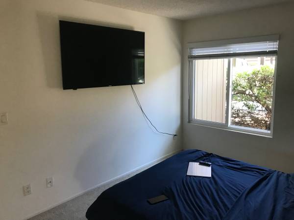 The bedroom is partially furnished and has a very comfortable queen size bed and large tv. Very spacious, private bathroom.