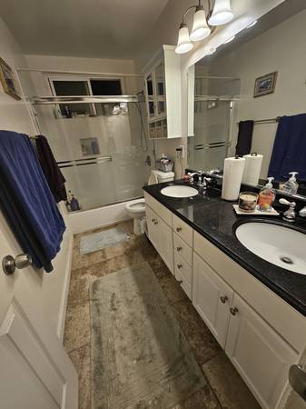 1 1/2 bath. Shared 2 sink bathroom upstairs. Bathroom downstairs.