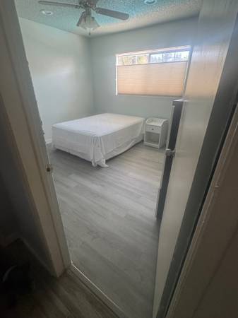 Picture are of one of two bedrooms and bathroom,