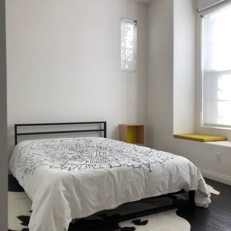 The room has hardwood flooring, natural ambient lighting & large mirrored closet, designer solar window shades, blackout shades and is on the separate level of the house to give privacy. Bathroom is completely remodeled in modern style and feels like a luxury spa.