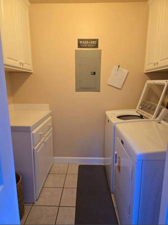 Laundry room available for $50 more monthly and features a brand new washer and dryer and cabinets for detergents and counter space to fold clothes.