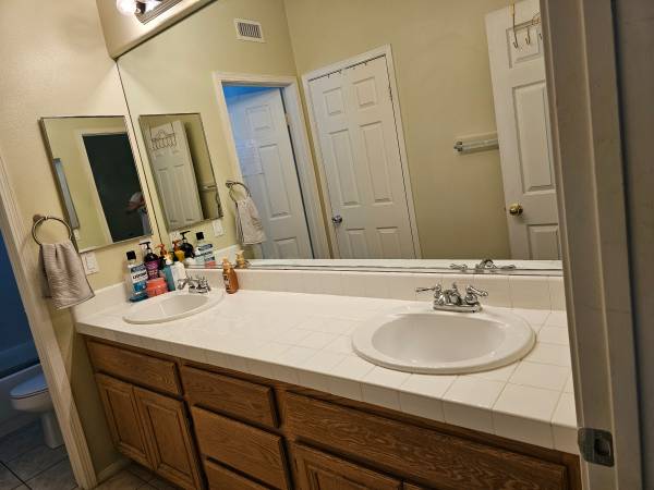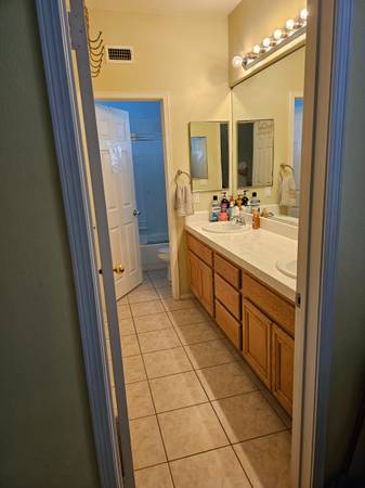 Room for rent in a two floors house with jack in Jill bathrooms..in a gate community area with security in place...wifi included, parking available. Kitchen for light groceries and microwave .Air-conditioned if need it. $extra.