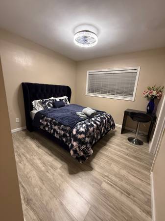 Up available a master bedroom in a single-family home. Room is fully furnished (or can be unfurnished). Near school and close to 22fwy and 57fwy. About 1 mile from Disneyland and half mile from Great Wolf lodge. Move in anytime. House is sharing living room and kitchen. All utilities are included (electricity, water, gas, trash, washer dryer, and the Internet). House has central air. Designate parking on driveway. Looking for individual (or couple) with full-time job, stable income. No drug, no smoking, and no heavy drinking are allowed on the premise and no pet. One month security deposit. Please call Kevin or text (preferred) 626-215- two zero seven nine (2079). Thanks