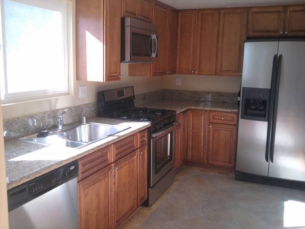 House was completely remodeled with Brand new kitchen and bathrooms. New cherry cabinets and granite counters. Brand new stainless steel kitchen appliances.