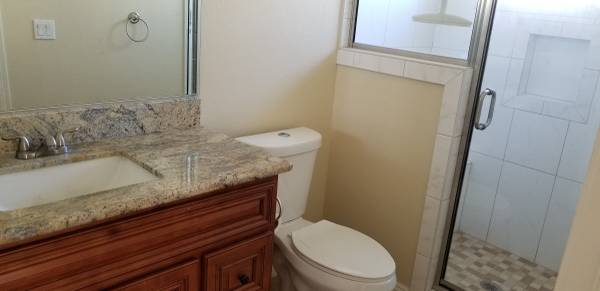 Large remodel master room for rent with a private outside entrance. The room is super clean with a large beautiful bright granite bathroom and custom tile flooring. Has a walk in closet, ceiling fan and dual French door entry. Has an outside private pathway to your room with your own personal room security lock. Perfect for a person who wants privacy and security and a quiet living space. There's no kitchen access, but you can have a microwave and small refrigerator in the room. Restaurants, food to go, supermarkets, laundry mat and shopping centers within 5-minute walking distance. Sorry, no pets.