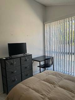 Furnished Room approximately 150 sq ft on the first floor in my 4 bedroom home with 3 other tenants. Shared bathroom with shared cleaning responsibilities. All utilities, cable Tv, Wi-Fi, internet included. Use of kitchen (for "light" cooking), swimming pool, jacuzzi, washing machine/dryer, refrigerator, etc. Street Parking.