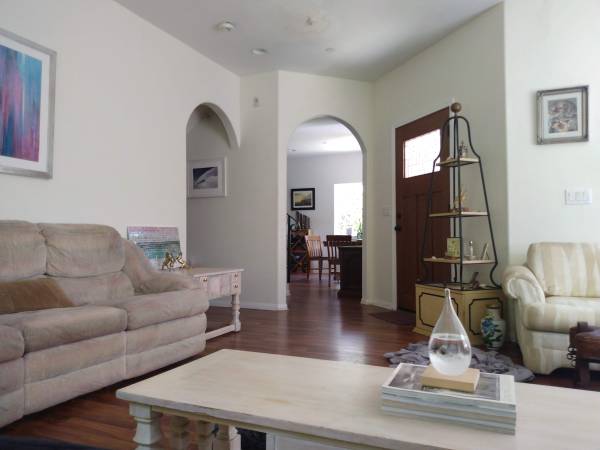 There is a nice new bed in the room, The shelving unit pictured will be moved upstairs, but I have some really nice beachy shabby chic furniture that we can put in there along with a nice flat screen TV . One of the perks about living here is and I am super mellow and positive and go out to LA quite a bit to visit my girlfriend and usually go to Hawaii in the summertime, I ski all winter long and also go out to my desert house so you will have the house to yourself fairly often. If you have a boyfriend or girlfriend I would ask if you could go there and not bring them over here, as this is a room rental with house privileges but only for you or maybe a family member or two if they come to visit. It could be a perfect setup for someone that likes the beach lifestyle and a nice well-kept home in a very nice and safe neighborhood. Available now. And could start rent on the 15th or 1st of the month.