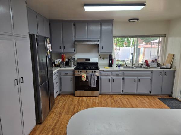 Unfurnished bedroom for rent (home newly renovated, fresh paint and carpet in room). Shared bathroom with one other roommate. Access to all common areas (kitchen, garage, yard, etc.). All utilities and WiFi included. In-house washer and dryer.