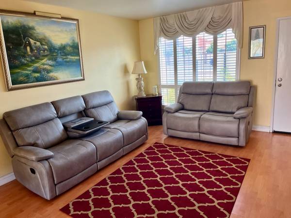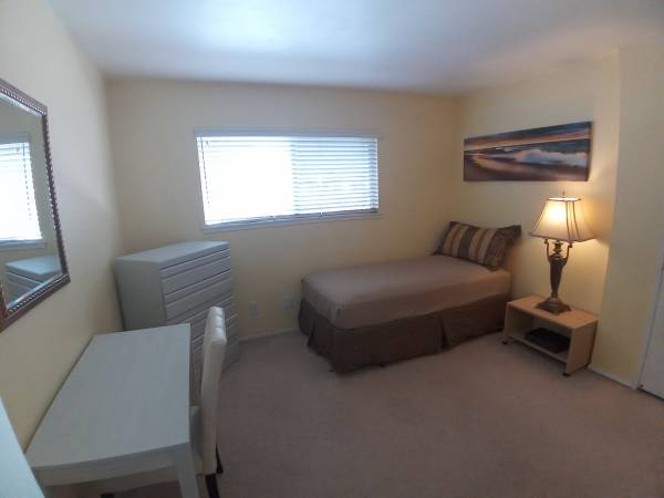 Private bedroom & private bathroom (one person) full time professional, male preferred, working full time outside the home. Furnished with bed, desk, 5 drawer dresser, and night table overlooks the San Gabriel mountains. Includes water, electricity, gas, trash, car garage parking, full kitchen use, indoor washer/dryer, WiFi, high speed internet, AC/heating, swimming pool, BBQ, gated entrance & security cameras. The home is a 4 bedroom 3 bathroom very clean townhouse. One other professional will live in home too. No pets, no smoking, no substance abuse, no guests. Located near 405/22 freeways, great shopping, markets, restaurants, minutes to the beach. Background check prior to moving in. If interested feel free to contact me and tell me a little about yourself.