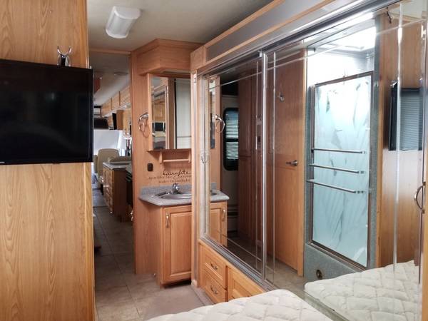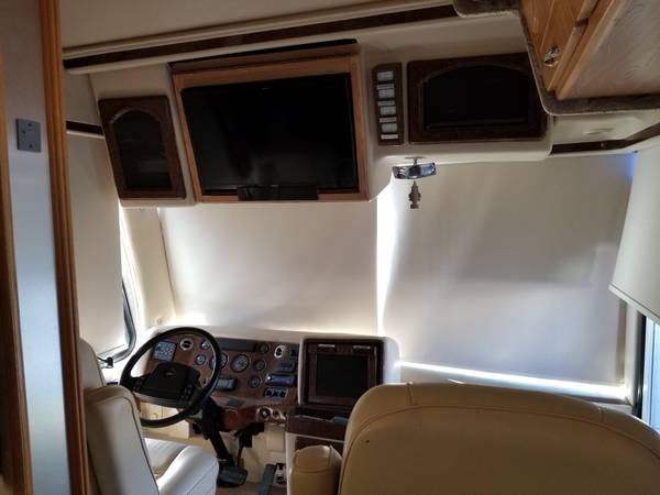JUST DROPPED PRICE BY $10,000 FOR AN ALL CASH AS-IS BUYER. ONLY 28,834 MILES. 2005 ALFA SEEYA GOLD 40' DIESEL PUSHER RV MOTORHOME BUILT ON A FREIGHTLINER XC CHASSIS. 400HP 8.9 ISL CUMMINS WITH THE 6 SPEED AUTOMATIC ALLISON TRANSMISSION. ORIGINAL OWNER WAS FROM AUSTIN, TEXAS WHO PURCHASED IT NEW FROM MIKE THOMPSON RV IN EL MONTE, CALIFORNIA. I'M THE SECOND OWNER. I HAD $2800 WORTH OF SERVICE WORK DONE AT CUMMINS AND PASSED ALL DOT INSPECTIONS BY THEM at 26495 miles. THIS WAS $256,000 NEW. IT WAS THE TOP OF THE LINE ALFA WITH EVERY POSSIBLE THING YOU COULD GET ON ONE AND HAS ALSO HAD A CARRIER 3RD AIR CONDITIONER ADDED ON THE ROOF. THE ORIGINAL 2 AC UNITS ARE BASEMENT AIR THUS ALLOWING FOR THE CRAZY HIGH CEILING INSIDE WITH A CEILING FAN. POLISHED ALCOA WHEELS. NEW SOLAR SETUP JUST PURCHASED AND IS INCLUDED. 2 SLIDES. THE DRIVERS SIDE IS 42" DEEP AND HUGE AND THE PASSENGER SIDE SLIDE IS ALL CLOSET WITH GIANT MIRROR SLIDING DOORS. AQUA HOT SYSTEM WITH HEATED TILE FLOORS. GIANT WINDOWS ALLOWING IN LOTS OF LIGHT. BRAND NEW LEATHER RECLINER WITH OTTOMAN. GUARDIAN GENERAC 75D 7500 DIESEL GENERATOR. AUTOMATIC GPS SATELLITE DOME TRACKING SYSTEM FOR THE TV'S. INDEPENDENT FRONT SUSPENSION, J BRAKE, GIANT BRAKES. Rear vision Camera With Monitor * Electric sun visors * Leather Captains chairs * Tilt and telescopic Steering Wheel * Electric step * Inverter/Converter/Charger * Hydraulic leveling Jacks * Electric Girard Patio Awning * Awnings over slideouts, Windows and Door. * Auto Track Satellite System * Large 2 door Refrigerator w/ Ice Maker * Washer/dryer * 3 Burner Stove w/ Oven * Microwave * 10 Gallon water heater * Power roof vents with Exhaust fans *ONLY 28,834 ORIGINAL MILES ON THIS FANTASTIC DIESEL PUSHER. IT HAD 26,491 MILES ON IT WHEN I BOUGHT IT AND THEN HAD A PROFESSIONAL DRIVER BRING IT HERE TO COSTA MESA FROM KANSAS CITY AFTER BEING SERVICED AT CUMMINS IN KANSAS CITY. I HAVE THE TITLE IN HAND IN MY NAME AND IT IS CURRENTLY TITLED AND REGISTERED IN MONTANA. IT’S JUST BEEN SITTING AROUND AND NEEDS NEW TIRES, THE AWNING STITCHING HAS COME UNDONE AND THE LEFT REAR LEVELING JACK MOUNT WAS BENT A LITTLE. THE ACTUAL RAM/JACK WORKS FINE. THERE IS A LITTLE WATER STAIN ON THE CEILING JUST ABOVE AND BEHIND THE DRIVER SEAT WHERE THE FRONT BODY CAP MEETS THE ACTUAL ROOF. YOU CAN SEE IT IN ONE OF THE PICTURES. THERE IS ALSO A LITTLE WATER STAIN IN THE CEILING AT THE VERY LEFT REAR OF THE MOTORHOME IN THE CORNER OF THE BEDROOM. THESE HAPPENED BEFORE I GOT IT AND THE ENTIRE ROOF WAS SEALED WHEN I GOT IT HERE WITH SELF LEVELING DICOR. NO LEAKS SINCE I HAVE HAD IT. SOME OF THE GRAPHICS ARE PEELING. OTHERWISE IT IS A VERY NICE 19 YEAR OLD CLASS A WITH VERY LOW MILES. THE ASKING PRICE IS ABOUT 27% OF THE ORIGINAL PRICE BACK IN 2005. MY GUESS IS IN 5 OR 10 YEARS IT WILL STILL BE WORTH $69,950 IF YOU TAKE CARE OF IT. A NEW ONE LIKE THIS IS PROBABLY $450,000 NOW. TITLE IN HAND. CURRENT REGISTRATION.