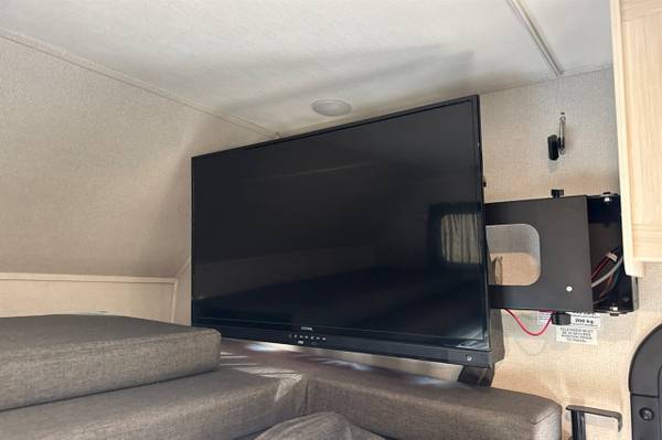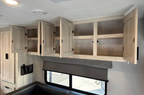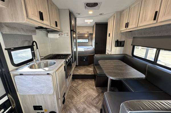 The dining area includes a comfortable booth dinette, perfect for family meals or game nights. The dinette can also be converted into an additional sleeping area, accommodating more guests without sacrificing space.