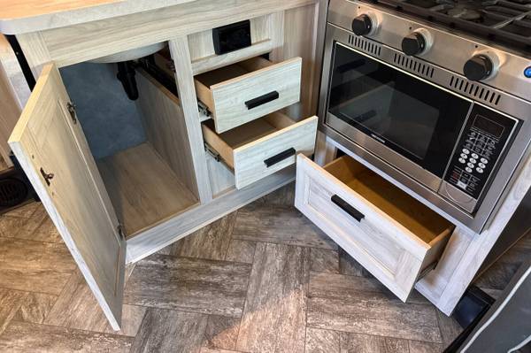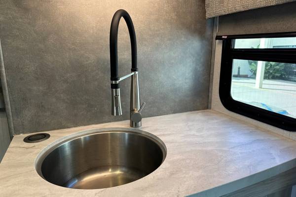 For entertainment, the Sunseeker includes a high-definition TV in the living area, as well as Bluetooth capabilities for seamless streaming from your devices. The sound system is designed to provide high-quality audio for your favorite music or movies while you relax indoors or outside under the awning.