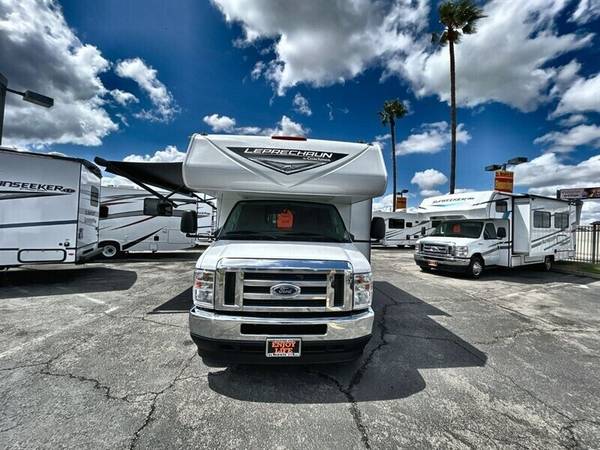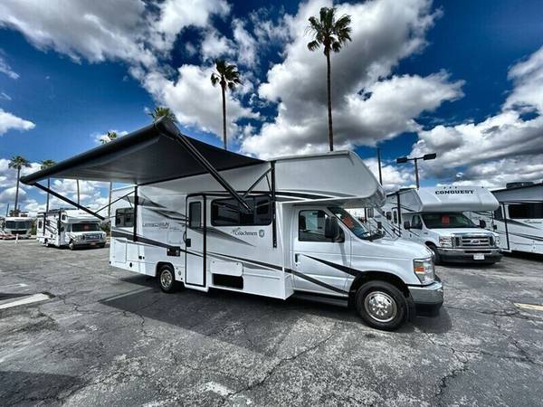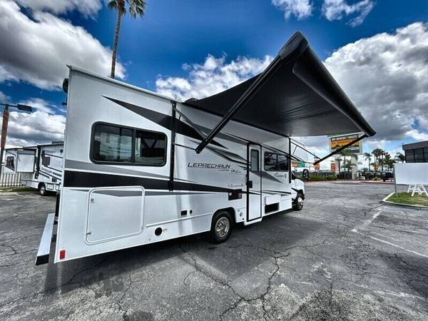 Exterior: The exterior of the Coachmen Leprechaun 260QB is both striking and functional. The sleek design is enhanced by modern graphics and a durable fiberglass exterior, ensuring that you travel in style wherever you go. The power awning with LED lighting provides the perfect outdoor entertainment space, while the exterior storage compartments offer ample room for all your gear and equipment. With a sturdy Ford chassis, this motorhome is built to handle the open road with stability and reliability.