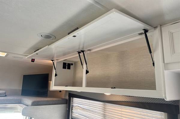 Exterior Design: The sleek and modern exterior design of the 2025 Thor Four Winds 28Z immediately catches the eye, with its aerodynamic profile and bold lines. The full-body paint options enhance the overall aesthetics of the vehicle, providing a premium look that sets it apart from the competition. The large power awning extends the outdoor living space, allowing you to relax and enjoy the surrounding views in comfort. The automatic leveling jacks make setting up camp a breeze, ensuring a stable and secure foundation for your adventures.