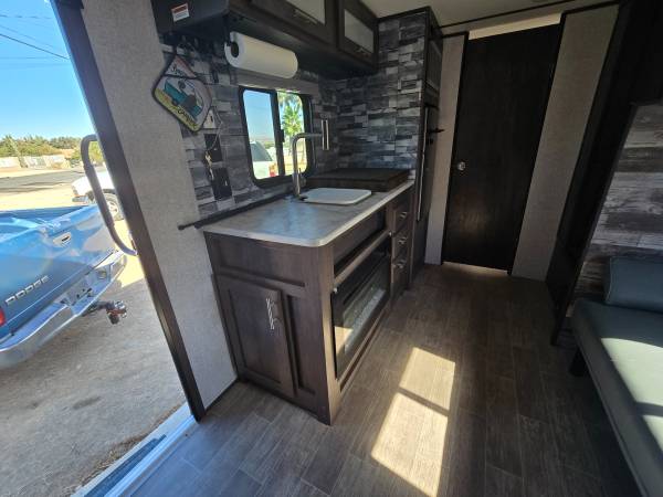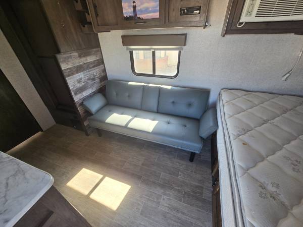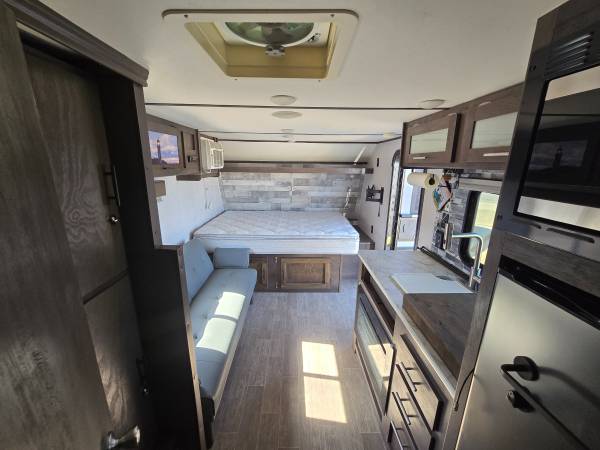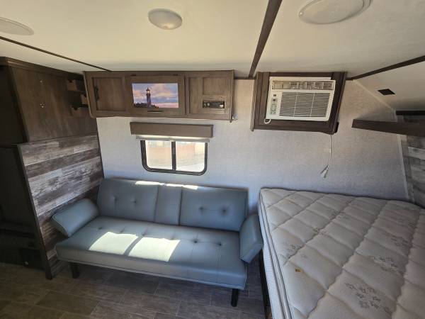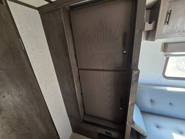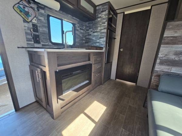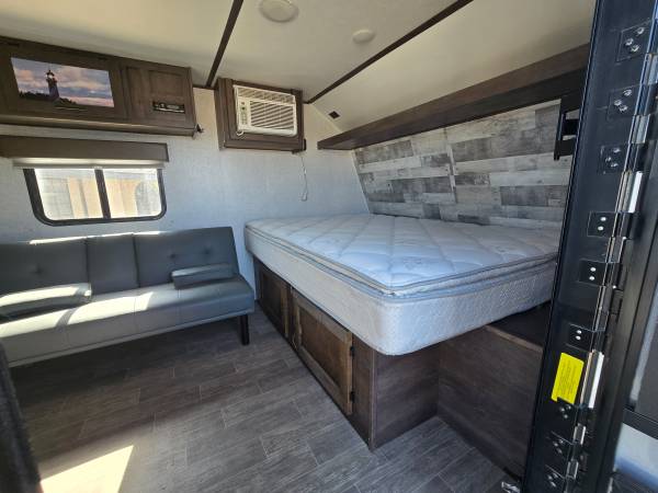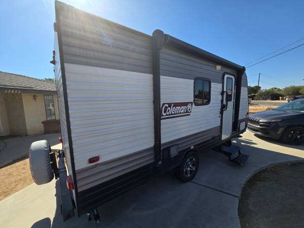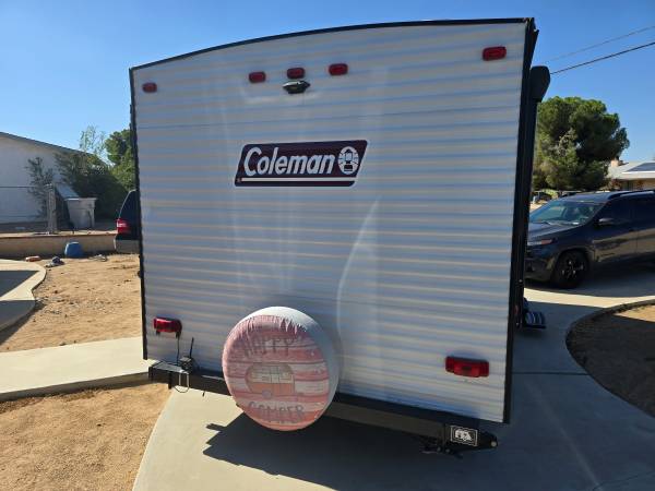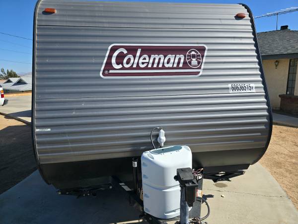 2020 COLEMAN 17FT CUSTOM BUILT FRONT QUEEN BED WITH SOFA AND REAR BATH...ELECTRIC AWNING...HUGE CLOSET IN REAR FOR CLOTHES, GOLF CLUBS, FISHING EQUIPMENT, YOU NAME IT...AIR CONDITIONING...PROPANE FIREPLACE FOR HEATING, HOT WATER HEATER...REFRIGERATOR...STAND UP SHOWER...LOTS OF STORAGE, WITH TWO LARGE STORAGE CABINETS ACROSS FROM REFRIGERATOR...