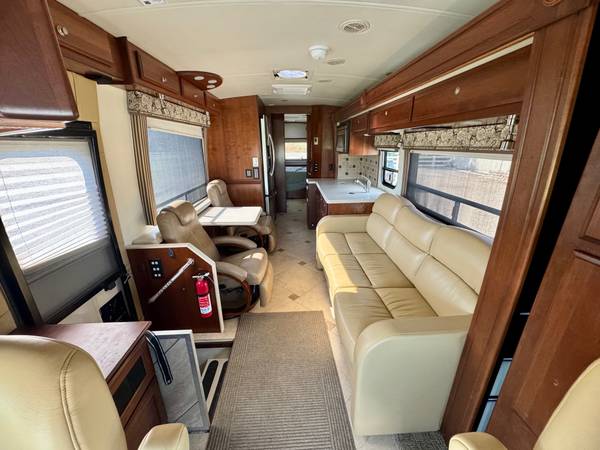 2013 Dynamax Grand Sport Ultra 370 525hp Cummins ISX diesel engine with 1,850 lb. ft. of torque 80,000 lb. GCWR. Tow up to 40,000 lbs! New tires, sealed roof, and recent engine service. Low miles:...