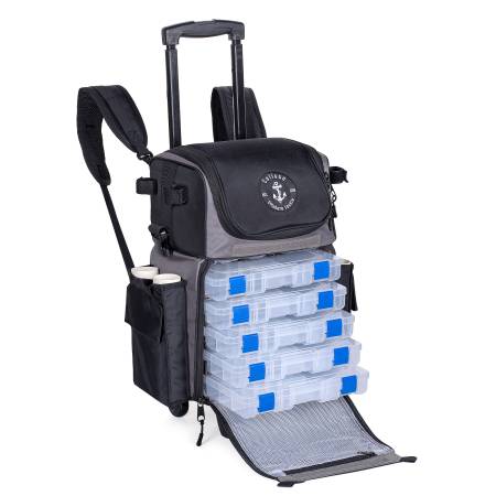 It can roll and it can be used as a backpack. Contains 5 trays.