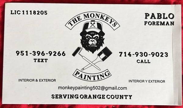 ✅ MONKEYS Painting Specialist, Drywall, Windows, more... ✅ Painting Services: Complete exterior interior painting Services. Final paint, color match, lacquer. Sheetrock and texture. Baseboards....