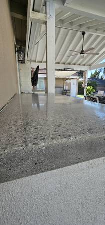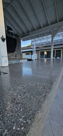 Different finishes, from a satin gloss finish to a semi-gloss finish and a high polish. Let us help you out with your concrete restoration. All the pictures are from the previous jobs I've done. Feel free to reach out with any questions at 949-372-2745. Ask for Erik