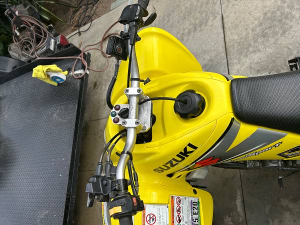 2003 SUZUKI 400 LTZ ONE OWNER IS SENOIR 78 YEAR OLD RUNS LIKE NEW NOW TIME TO LET IT GO. ORIG REAR TIRES YOU CAN TELL HOW LETTLE WAS USED. CAN TELL TIRES DATE CODE OF 03. FRONT TIRES CHANGE DUE ROCK...