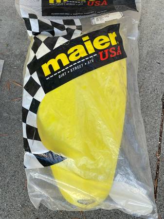 Several yellow Maier plastic items available. New in package: race hood $50 50984-15, switch holder/dash $40 17796-15, tank cover $35 17798-15. Used yellow tank cover $20. Other used plastic pieces available: radiator shrouds, front and rear fenders, more. Cash only.