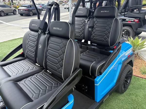 2025 Bintelli Nexus 4-Forward Non-Lifted 72-Volt Street Legal LSV Golf Cart in Metallic Gloss Ocean Blue w/All Black High Back Seats