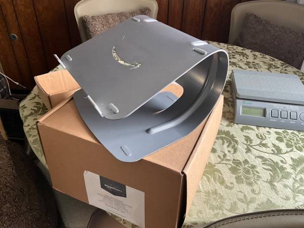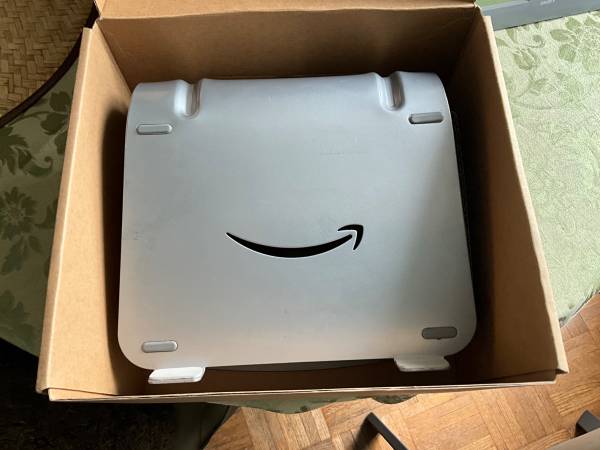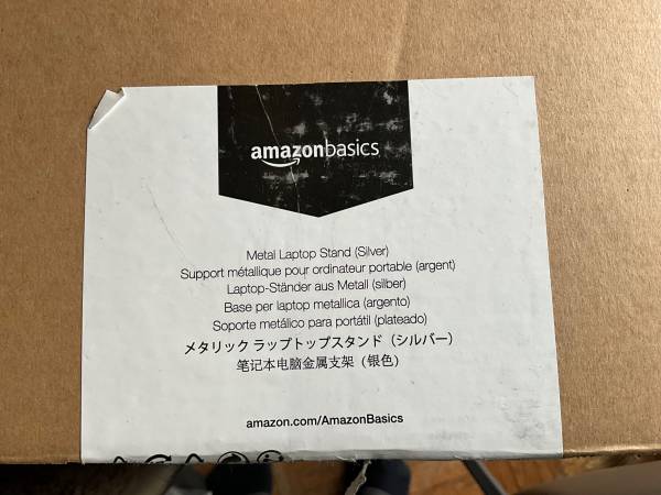 In Box, was used very briefly, Amazon Basics Metal Laptop Stand (Silver) Ipad