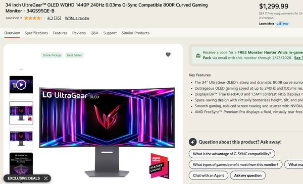 The 34" UltraGear OLED's steep and dramatic 800R curve surrounds you in the action