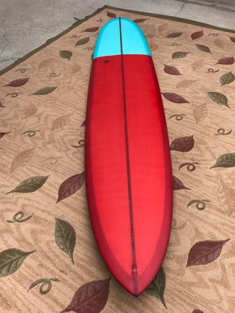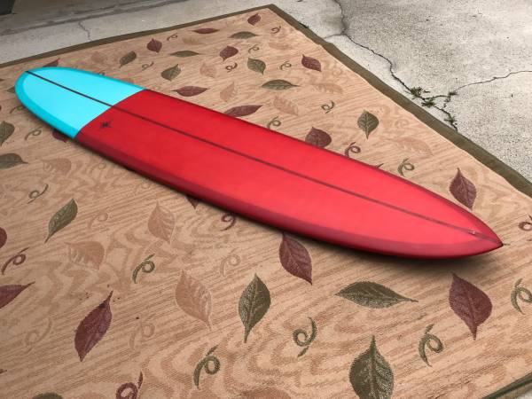 REDUCED! 9’6” X 23” X 3” Wayne Rich Custom Pintail Longboard Surfboard in like new mint condition. 1/2" Darkwood stringer, 2 Color Turquoise/Earth Red Tint Top and Bottom, deck and tail patches, fine sand finish, single box. Wayne designed this board with California point breaks in mind, so the board has more of a performance rail with a hard-edged tail and double concaves. Down the line speed demon, great noserider, super maneuverable. If you know you know, this is a gem. Fiberglass Fin Co. VOLAN FIN INCLUDED. $1,100. Not interested in any trades, Cash or Venmo only.
