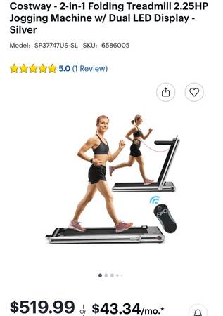 Costway - 2-in-1 Folding Treadmill 2.25HP Jogging Machine w/ Dual LED Display - Silver New in box only $290
