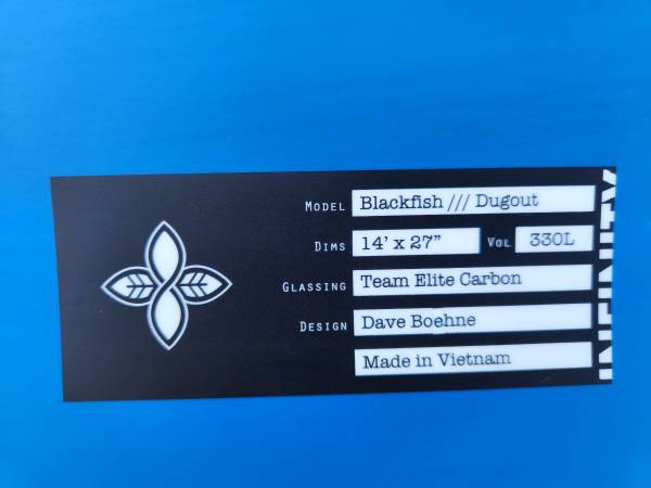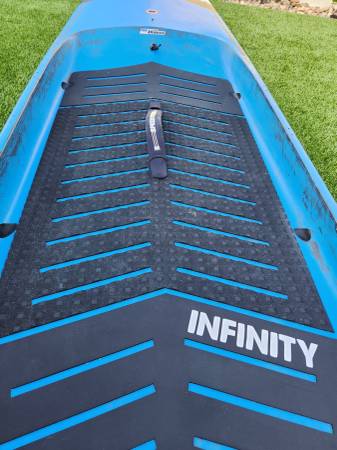 Reluctantly up for sale is a super rad Infinity Blackfish all carbon Dugout SUP with not a lot of use. No damage always stored inside. This board is fast and stable. I installed the rail tape on the sides for protection when paddling. The Dugout pad is perfect and always rinsed with fresh water. This board comes with a carbon fin.
