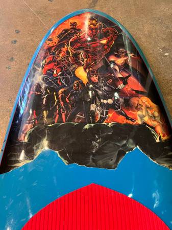 For sale is a gently used King's 10'x31" with approximately 160 liters of volume. This board has custom made Marvel graphics which cost over $1000. Add that to the cost of the board and this board new was close to $3000. This board is truly a one of a kind! Fins are included.