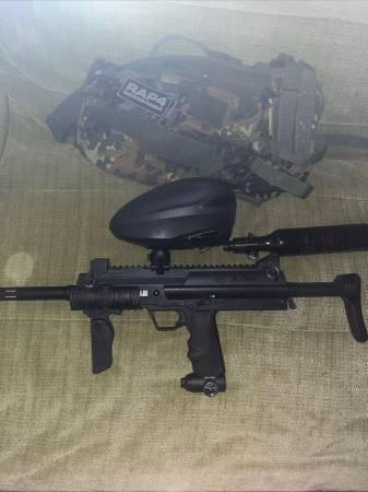 Tm7 paintball gun for sale comes with air tank and electronic hopper, pod vest. Airs up and fires in multiple firing modes. Collapsable stock low pressure regulator. Perfect for speed ballers. Please call me if your interested if not don’t waste my time with scams