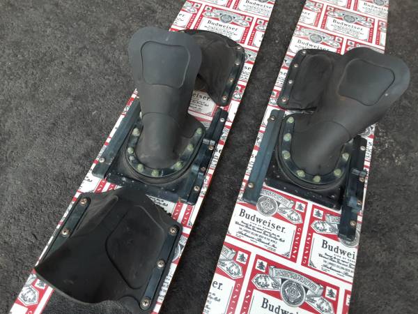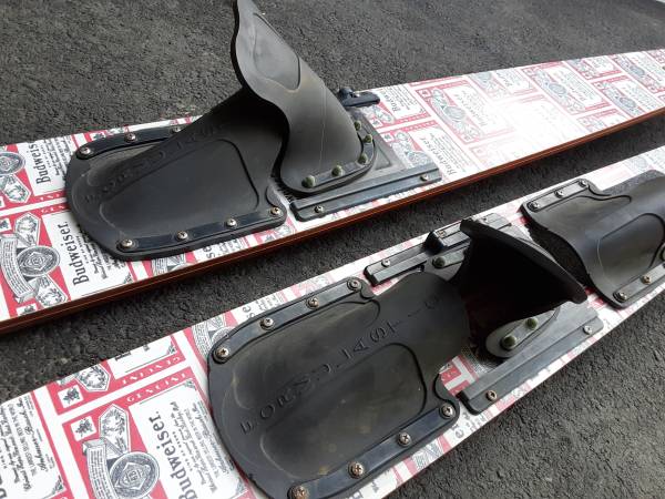BUDWEISER 66" DOUBLE SINGLE WATERSKI 1960'S FORMULASTIC ADJUSTABLE. $100.