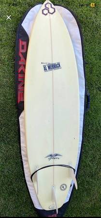 I bought this board new in 2006 and used it around 10 times. There was a small ding repair but I don't remember where it was. It has a OAM traction pad, Dakine leash, and comes with the Dakine bag....